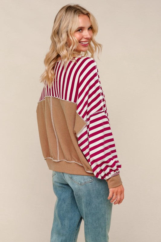 Crew Neck Loose Fit Stripe Pullover Knit Top
