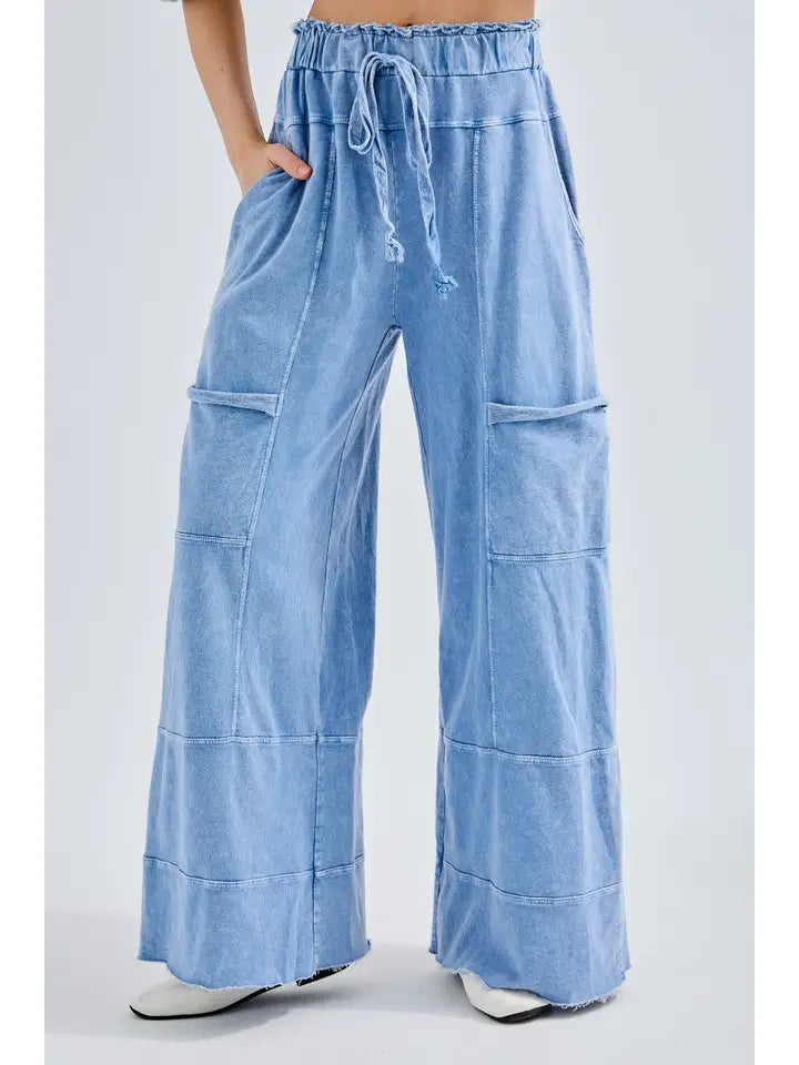 Mineral Wash Wide Leg Cropped Pants