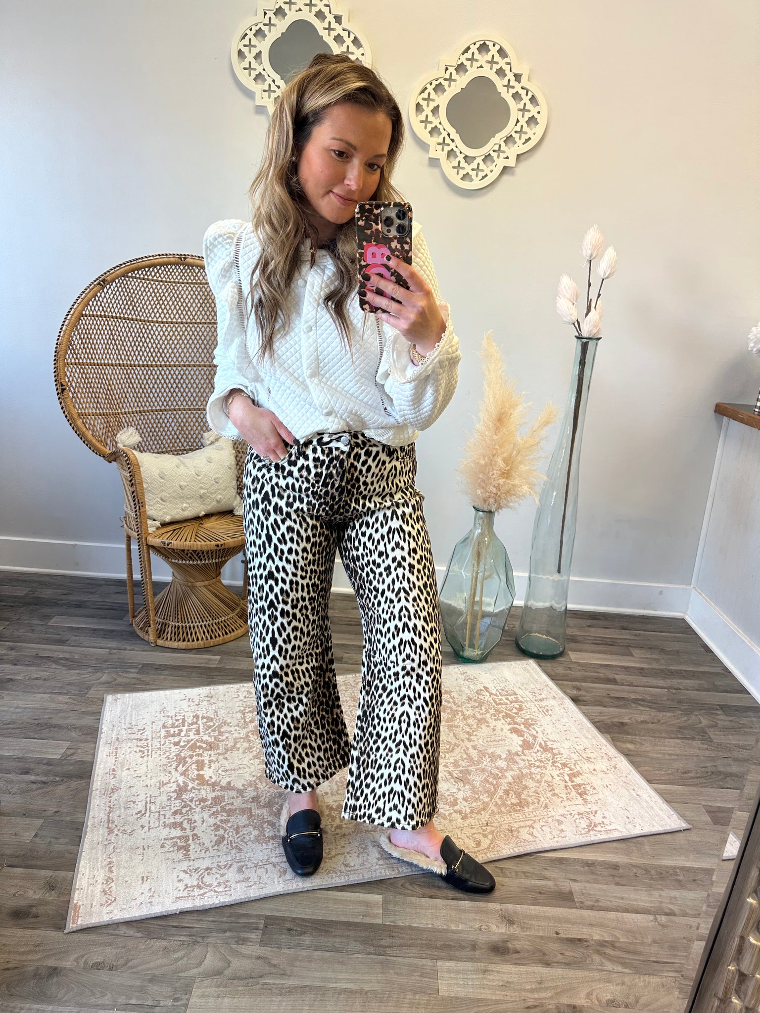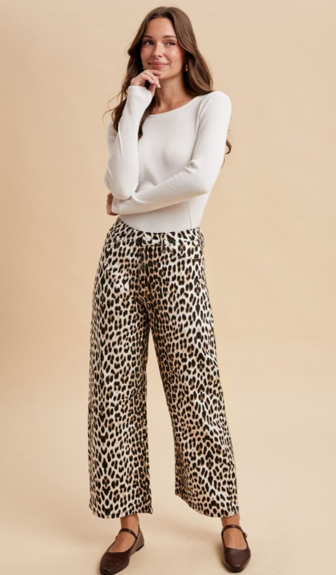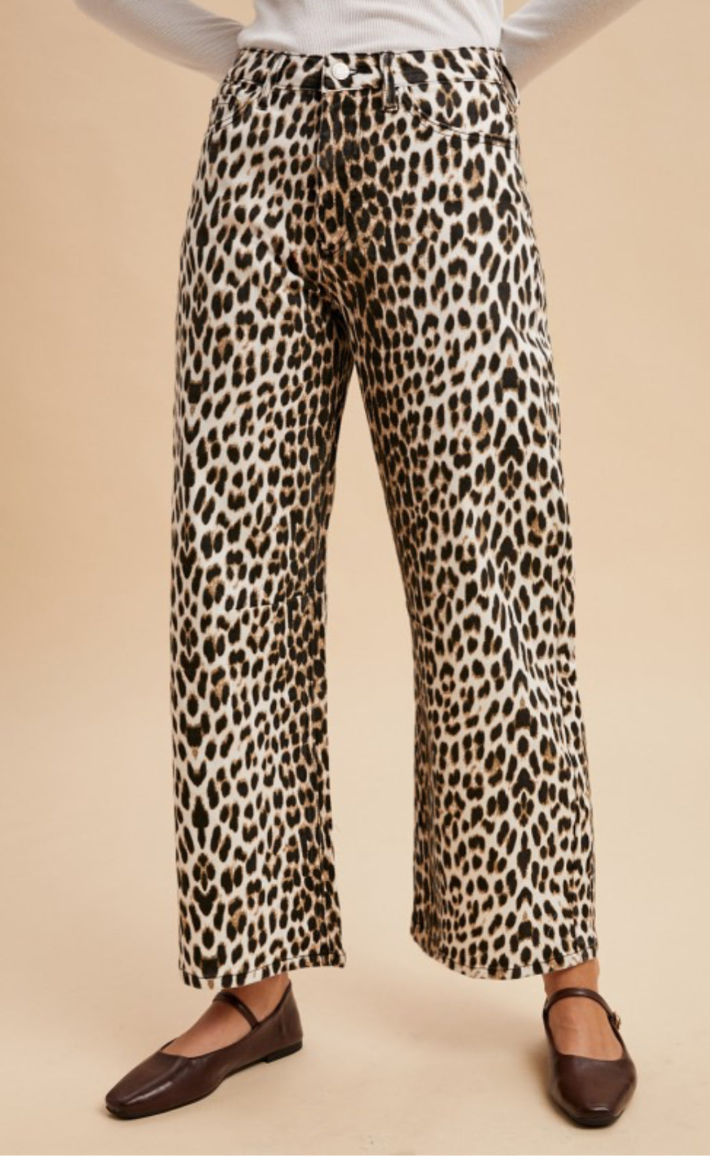 Stretch Leopard Animal Printed Barrel Leg Jean