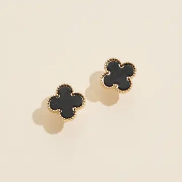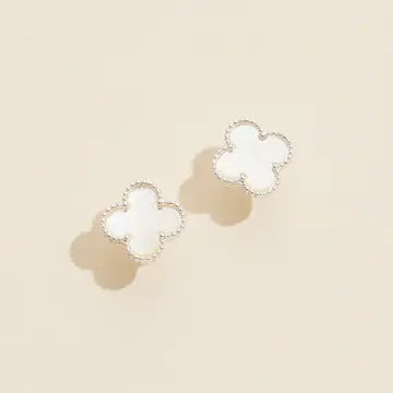 Shell Inlay Stud Earrings with Gold Beaded Trim