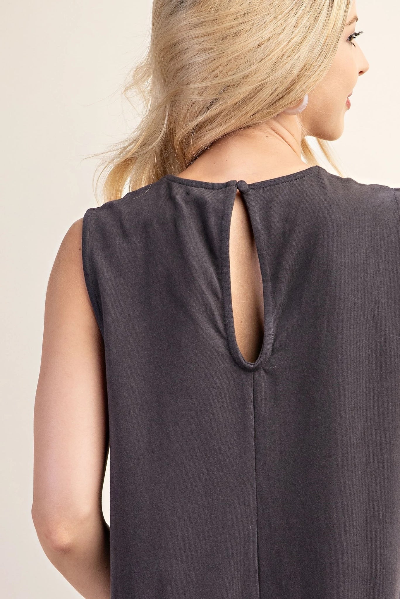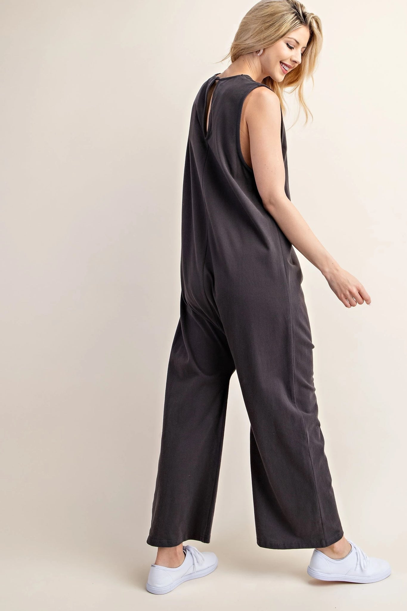 Sleeveless Jersey Fabric U-Neck Jumpsuit with Keyhole
