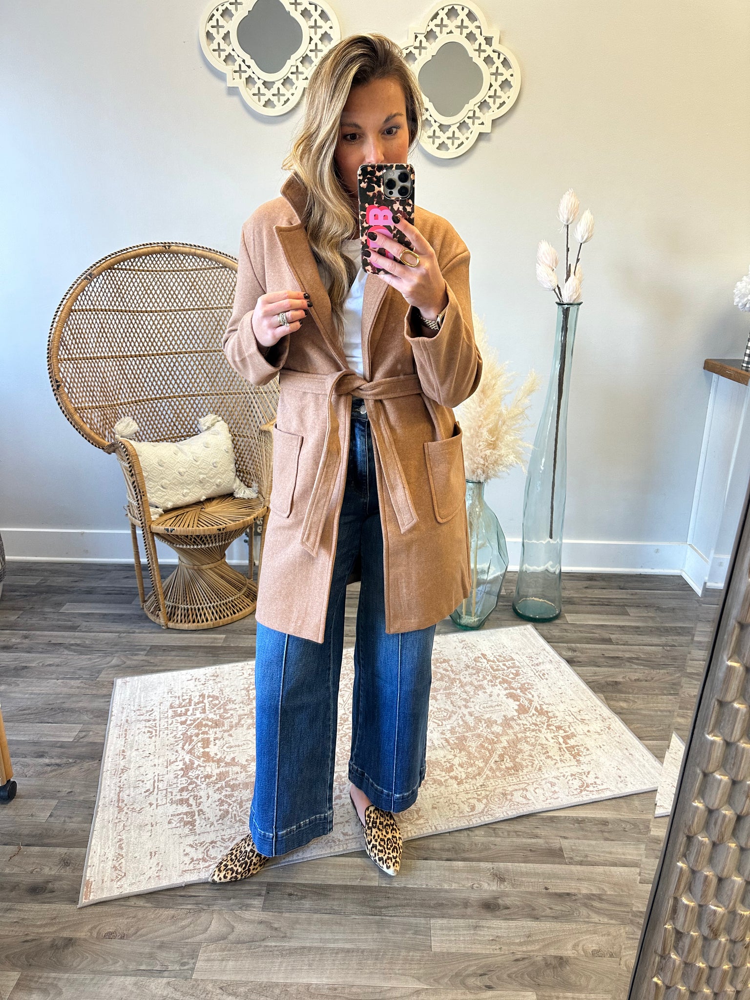Tie- Front Mid Length Coat
