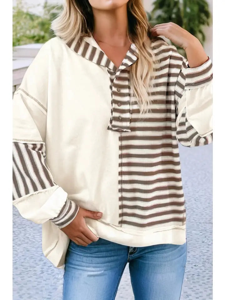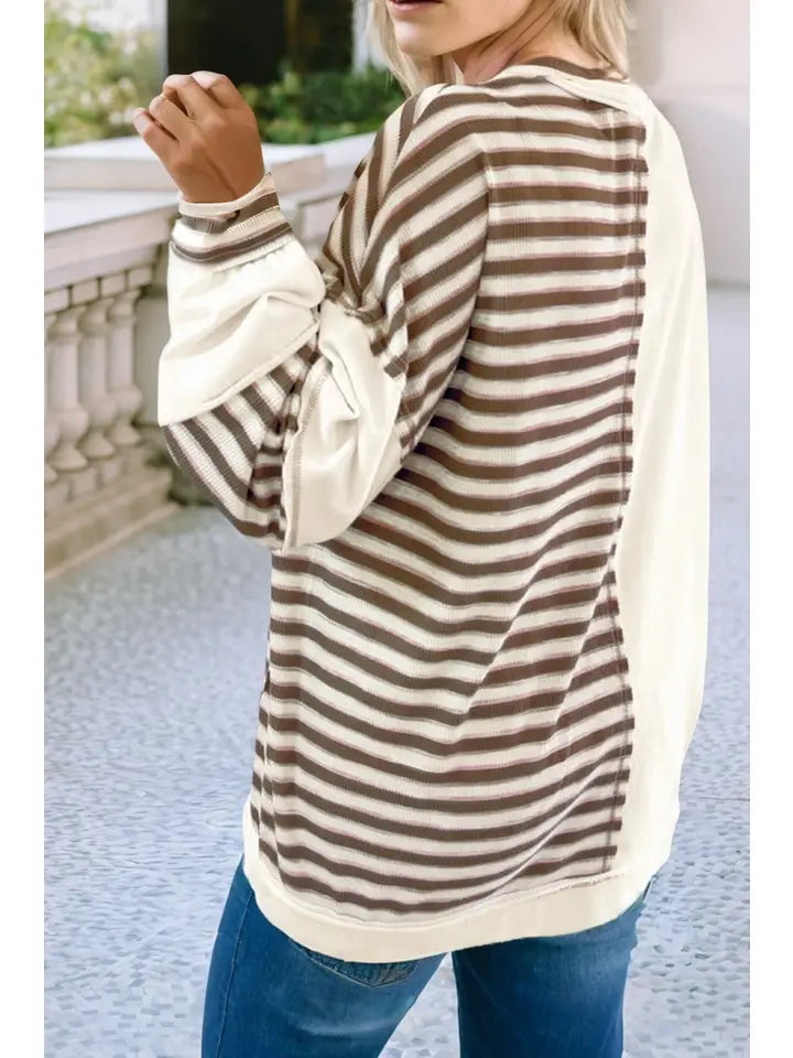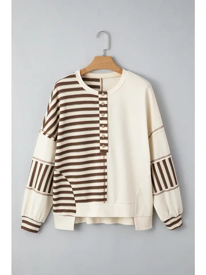 Stripe Stitched Detail Patchwork Oversized Pullover Top