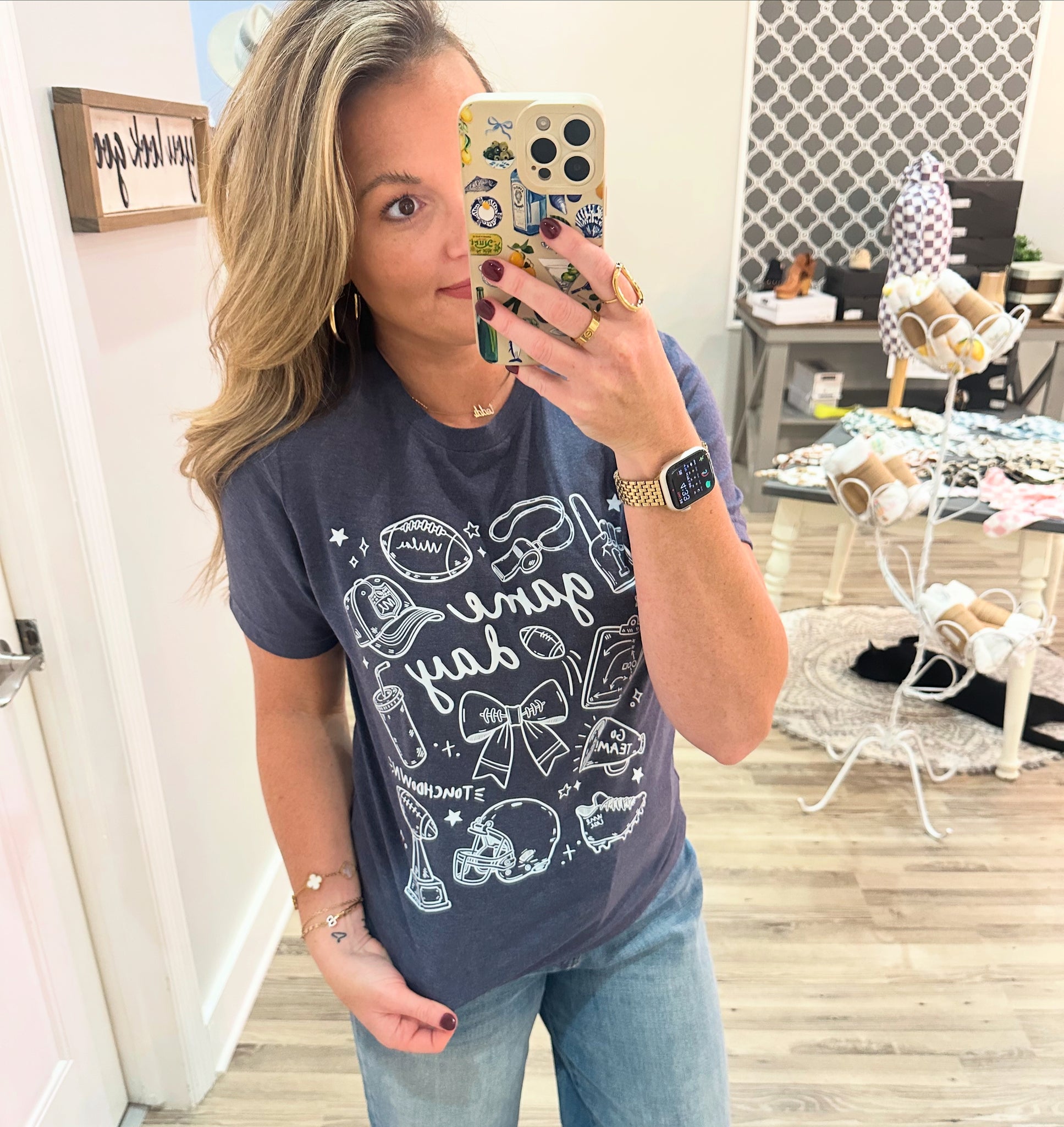 Game day tee, football graphic, cute sportswear, tailgate Graphic Tee.