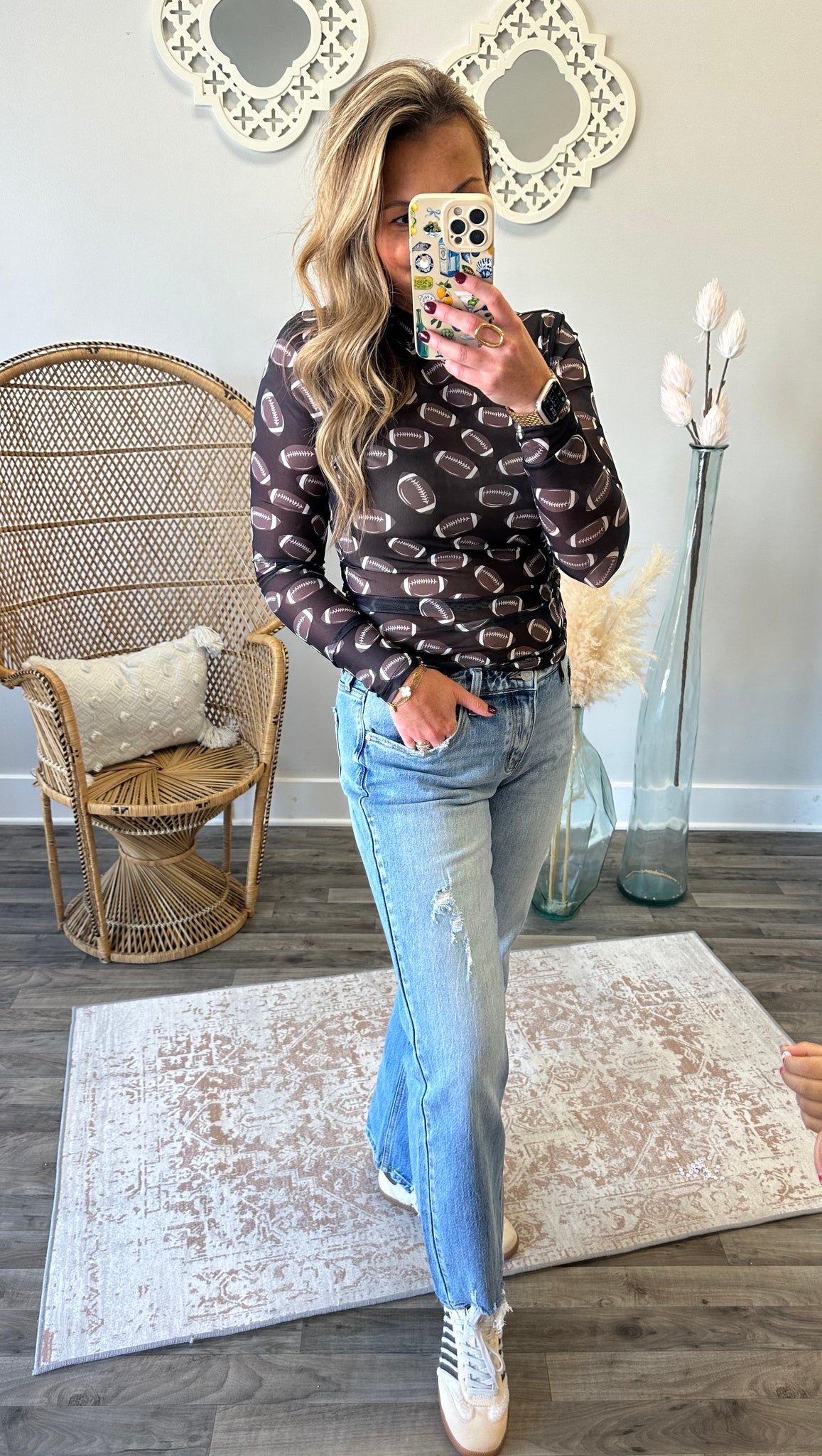Game Day Rugby Mesh Sheer Long Sleeve Top