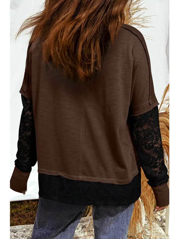 Sheer Lace Patchwork Casual Long Sleeve Tee